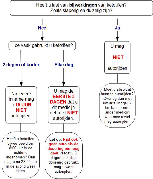 Het kan gevaarlijk zijn aan het verkeer deel te nemen als u dit medicijn gebruikt. Wilt u weten of u met dit medicijn mag autorijden? Beantwoord dan de vragen in het schema hieronder.